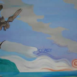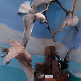 The collection of sea birds and water fowl is currently being constructed with a beautiful back drop painted by a VIU student.